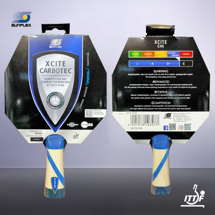 Pingpong Bet Tenis Meja Sunflex XCITE Carbotec 5000 C45 Kompetisi Bat