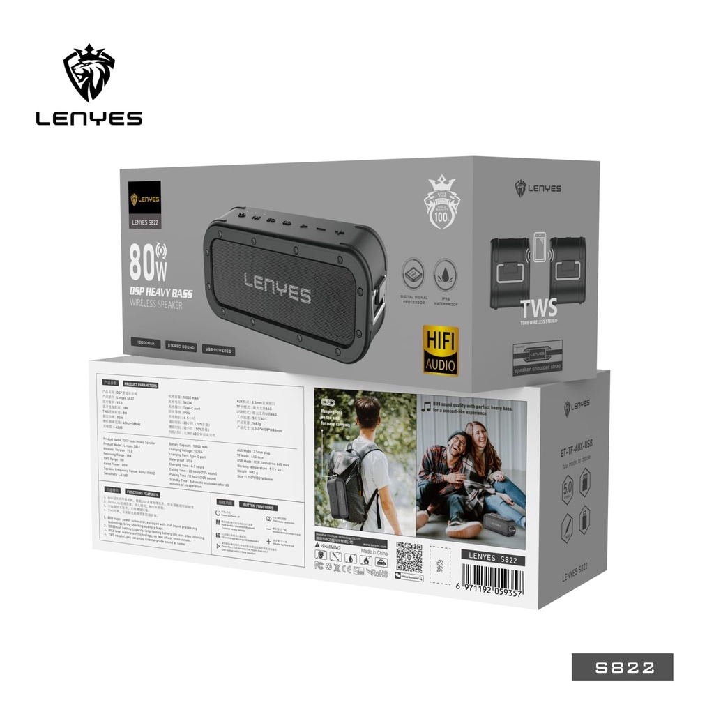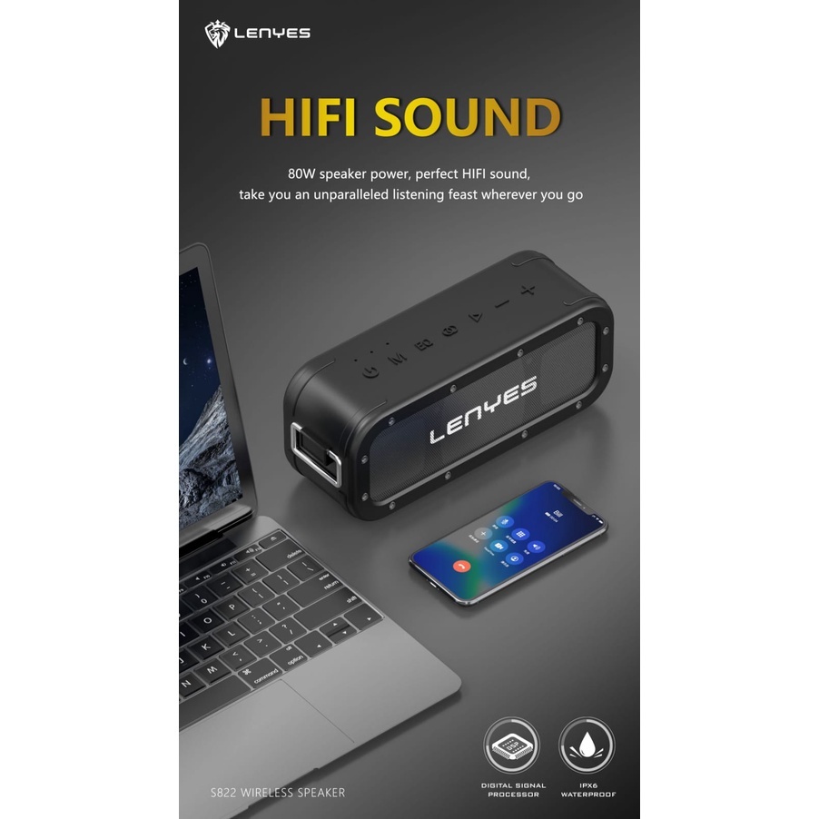 Speaker Lenyes S809/S810 80W Bombass Wireless Bluetooth 5.0 DSP Hifi Stereo Portable Powerfull Bass TWS