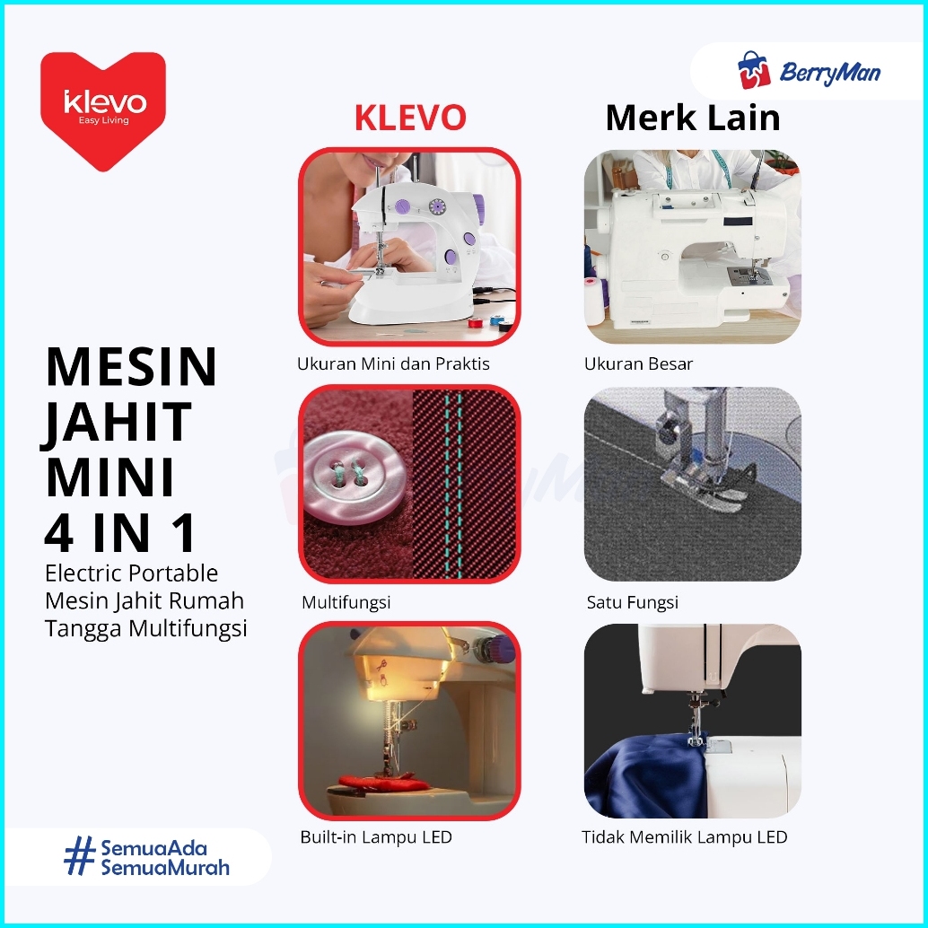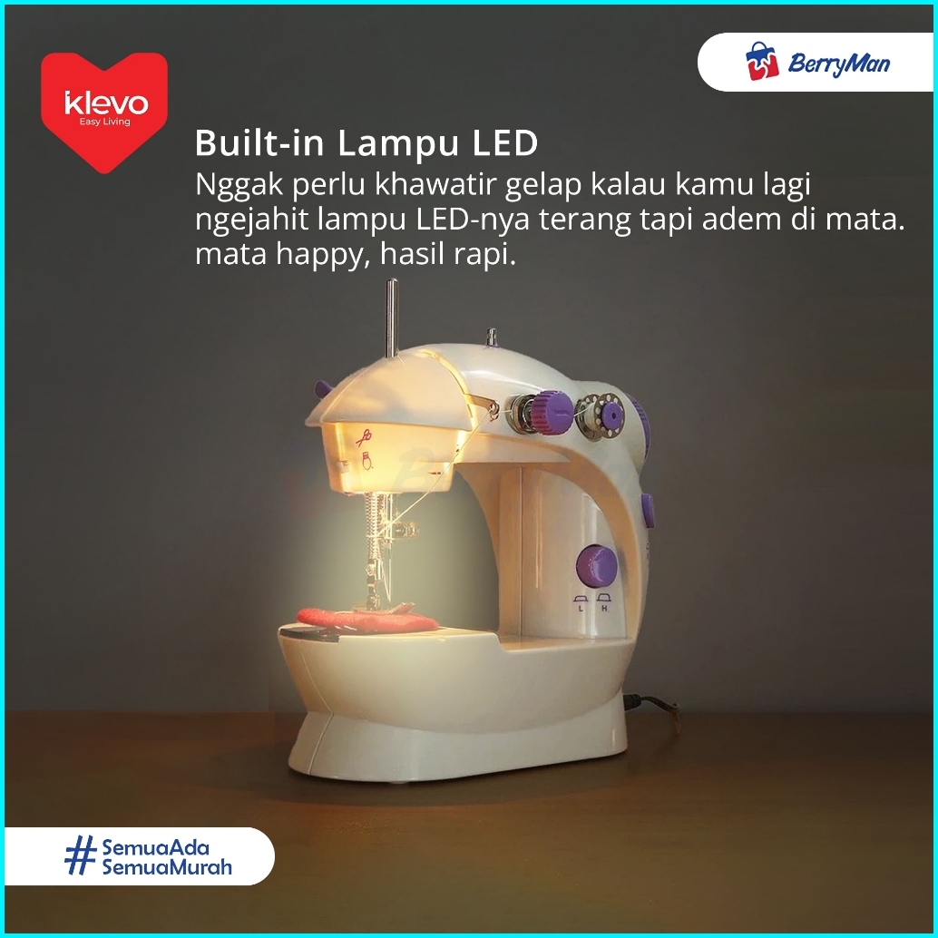 Klevo Mesin Jahit Mini 4 In 1 Elektrik Portable Lampu Led Mesin Jahit Rumah Tangga Multifungsi