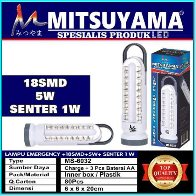 Lampu Emergency Ms-6032 Senter Led 18 Smd 5 W Senter 1 W Mitsuyama