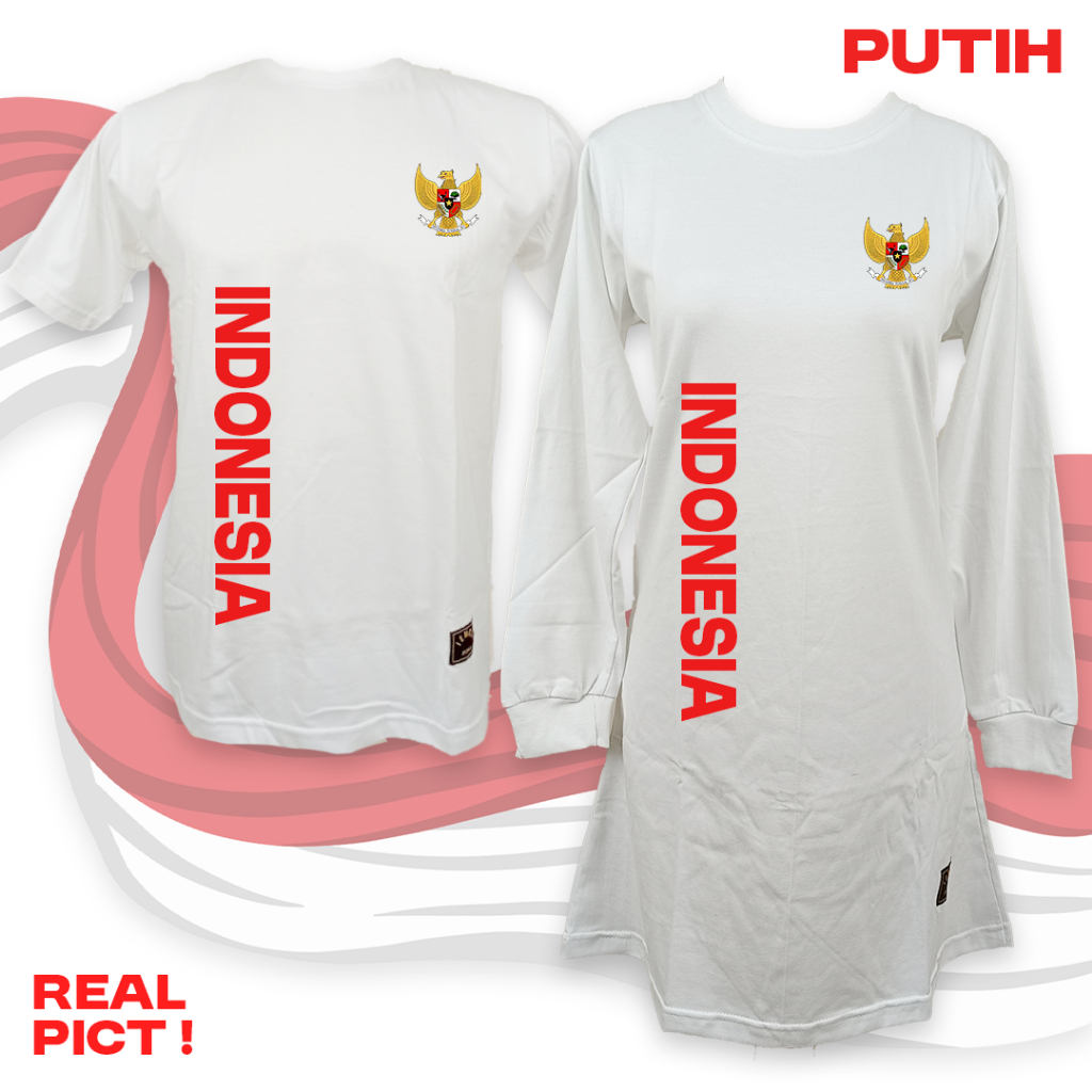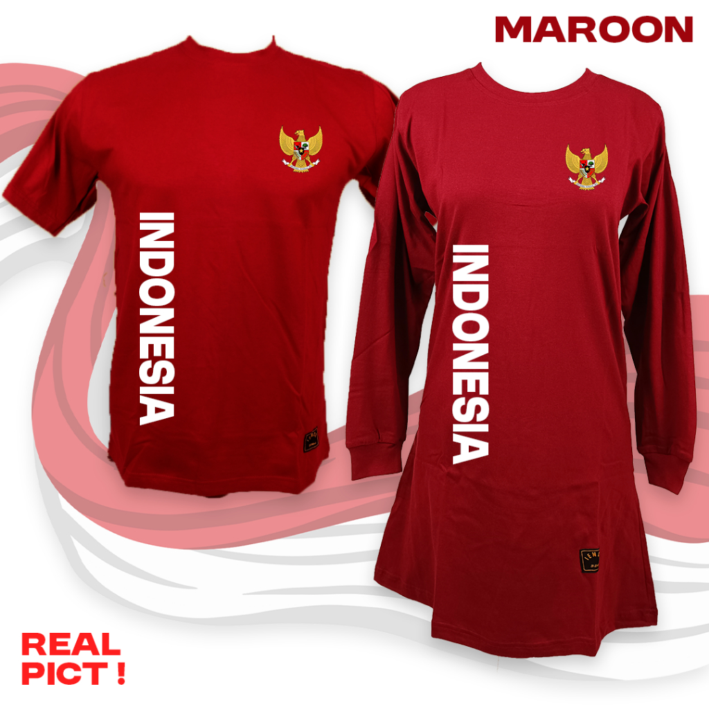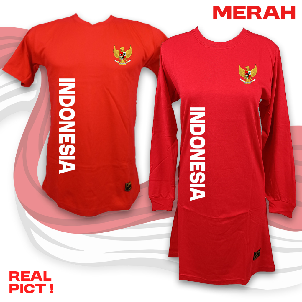 S-XXXL Kaos Couple Tunik Sablon Kemerdekaan HUT RI 17 Agustus 1945/Suporter Bola Indonesia Merah