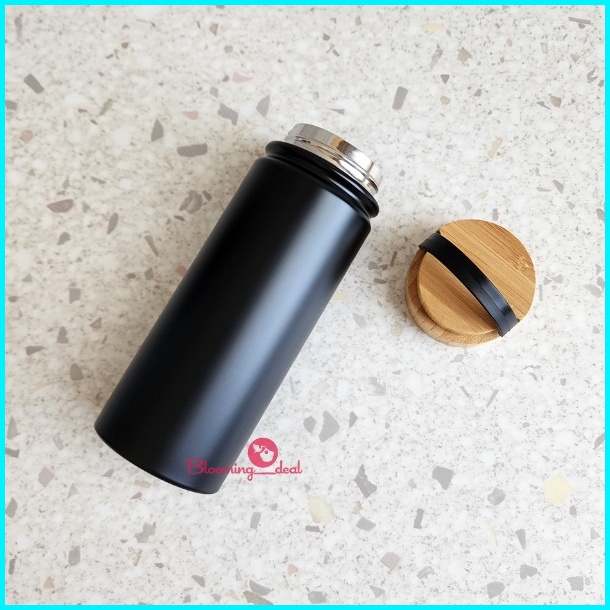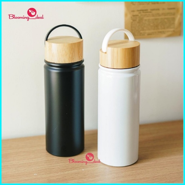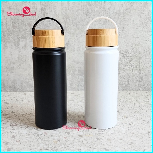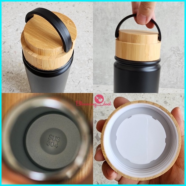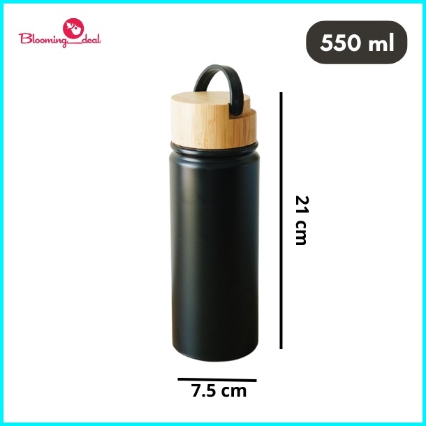 Tumbler Termos Stainless Steel Tutup Bambu Dengan Handle 550ml Hn223