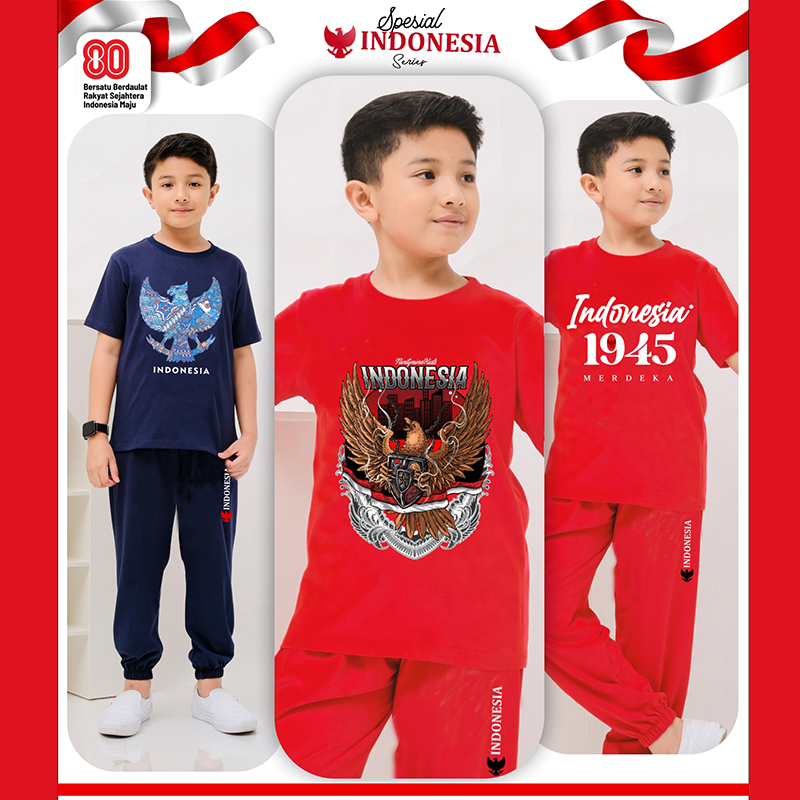 Setelan Anak Spesial Edition Indonesia Series Kaos Merah Putih 17 Agustus Kaos Kemerdekaan HUT RI