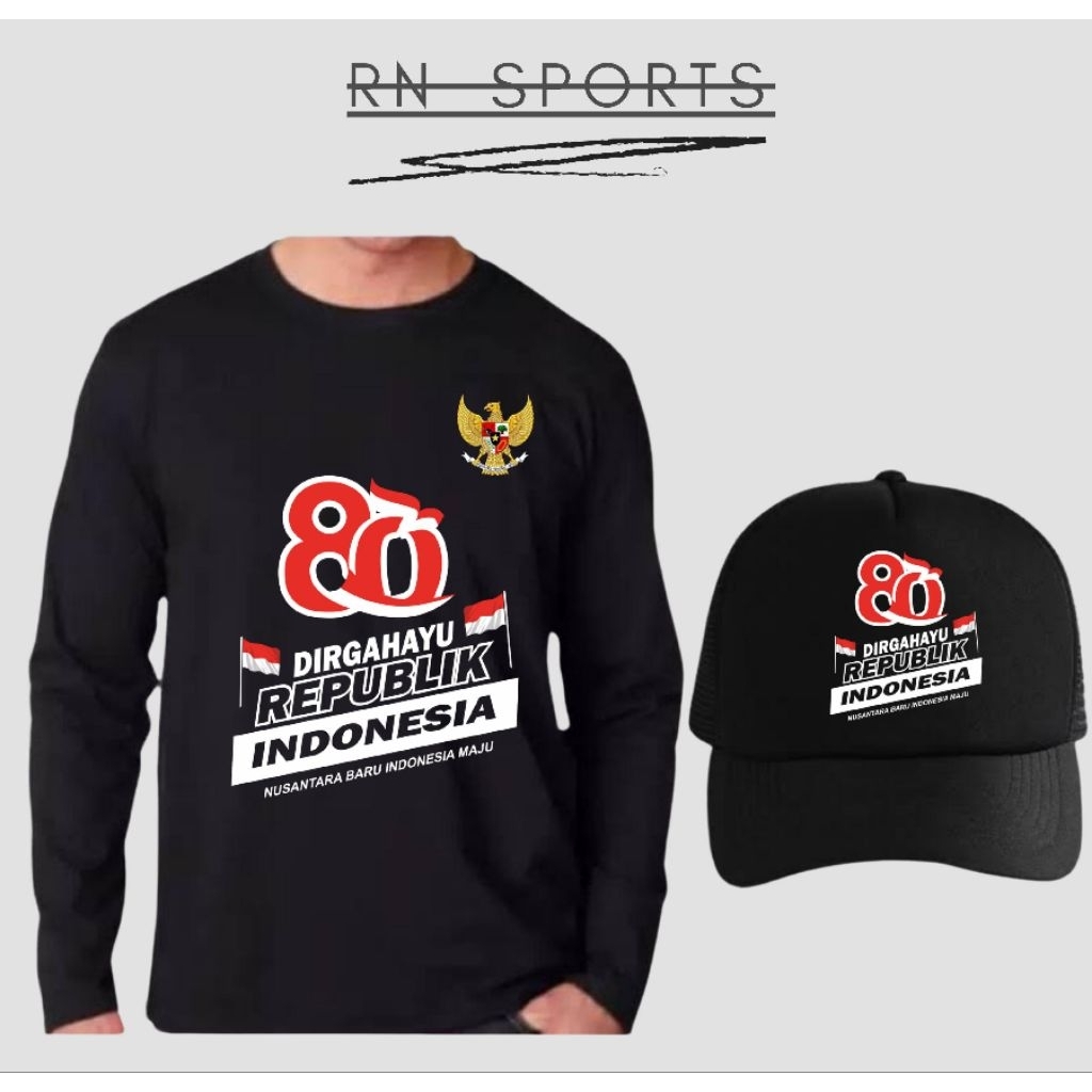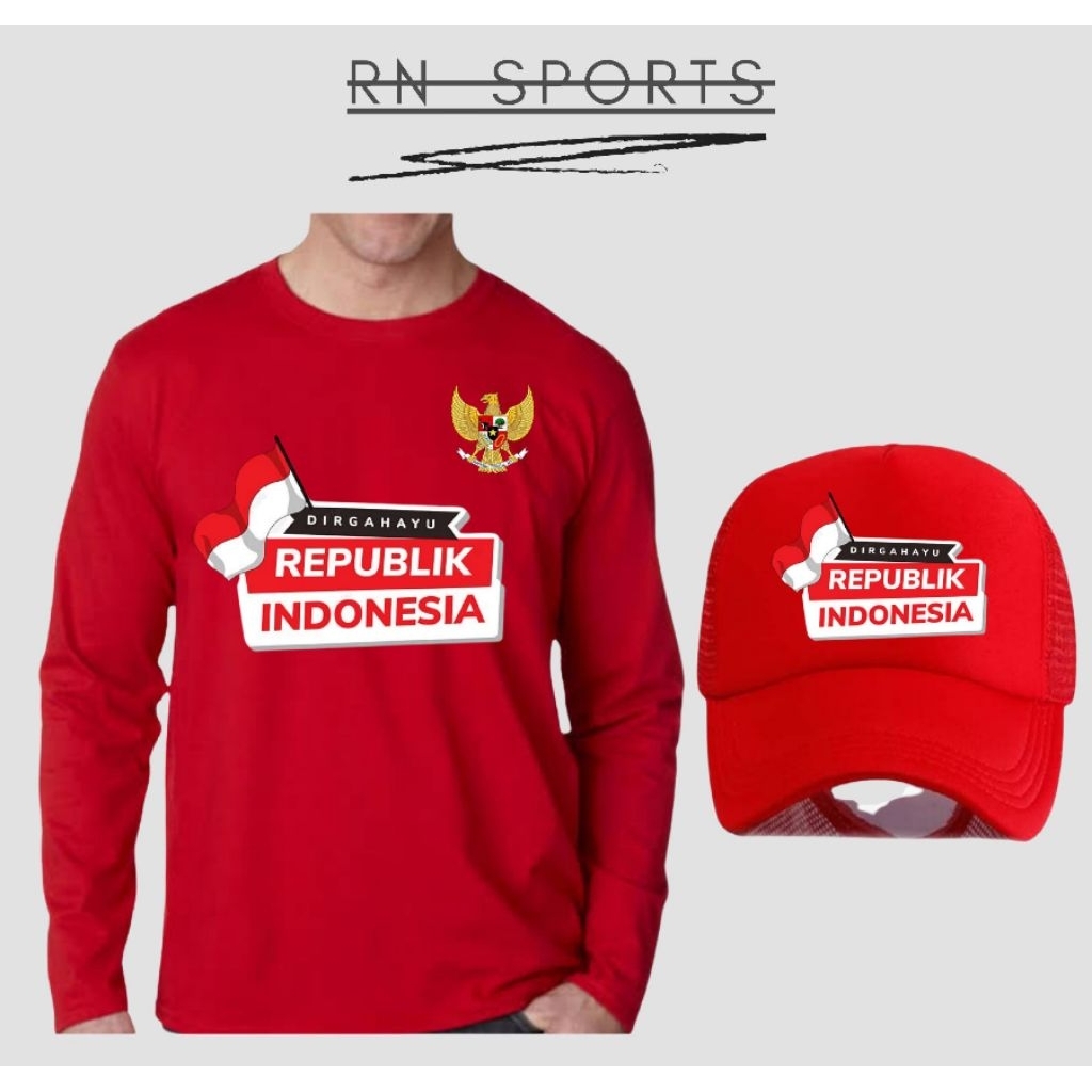Kaos Lengan Panjang Bonus Topi Dirgahayu Republik Indonesia Model Terbaru 2025 // Kaos Distro Lengan Panjang Agustusan 2