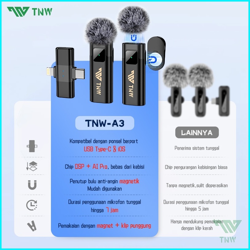 Tnw A2 A3 2 In 1 Wireless Microphone Magnetic Lavalier Mikrofon Hp Clip On Mic Portable Mikrofon Video Recording