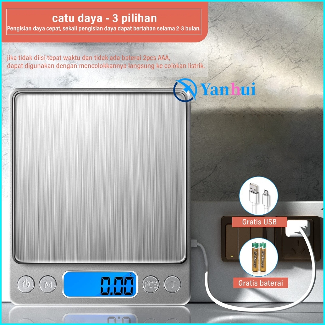 Timbangan Kue Dapur Digital 0.1gr 3kg Usb Rechargeable Akurasi Tinggi