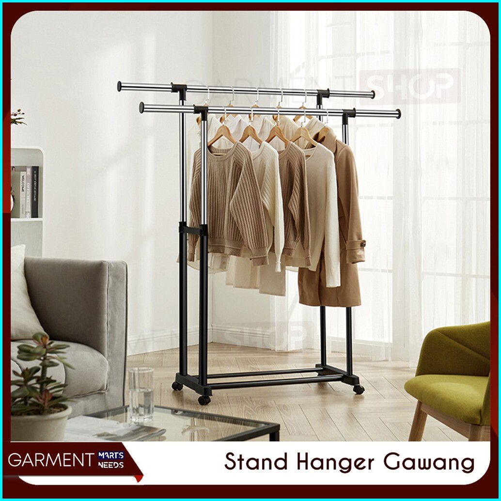 Stand Hanger Rak Gawang Gawangan Jemuran Gantungan Double