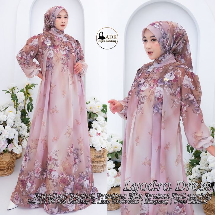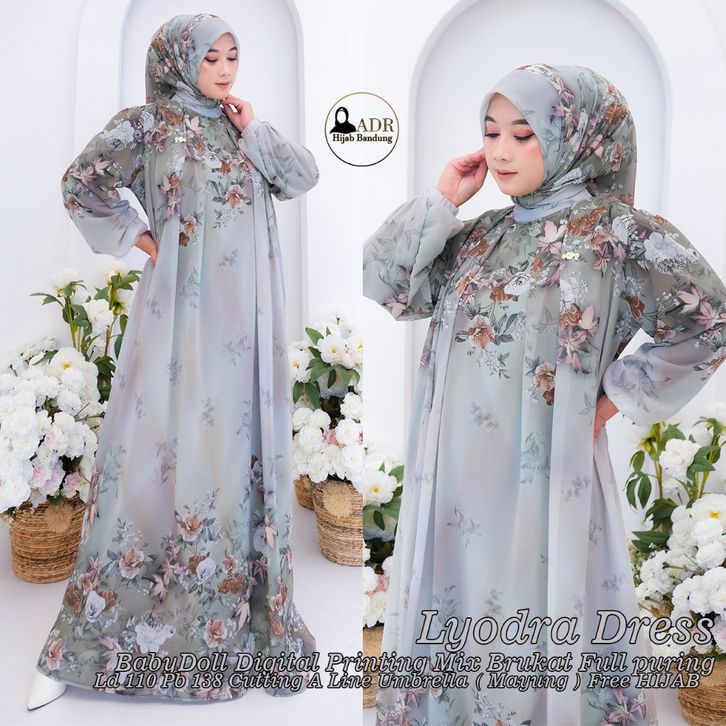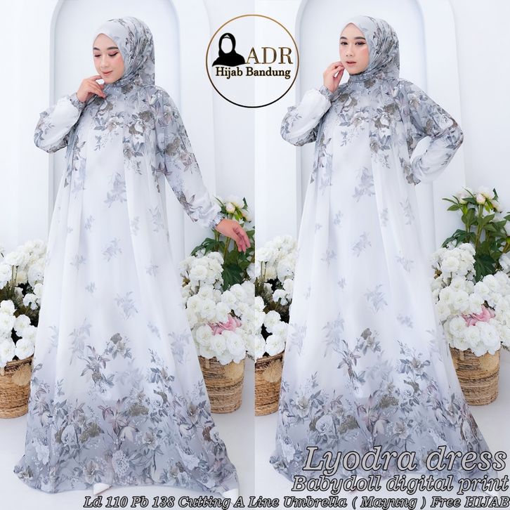 dress lyodra gamis babydoll digital printing full furing dan wudhu free hijab muslim