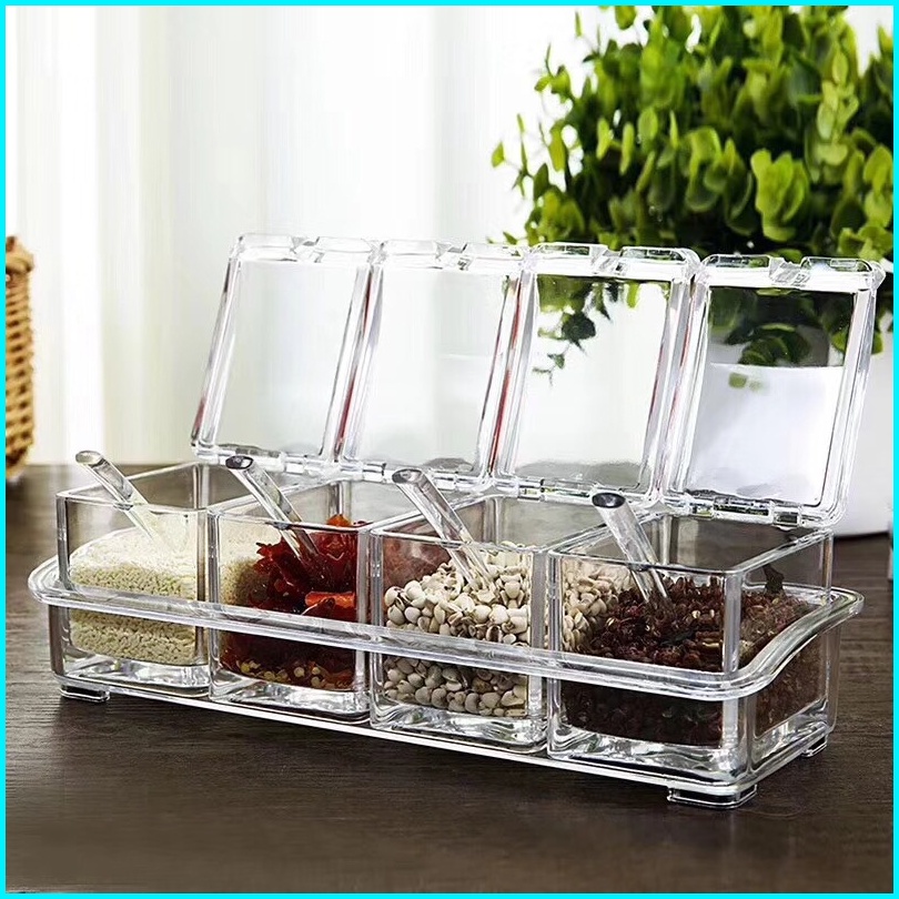 Zencontainer Bumbu Dapur Set Tempat Garam Acrylic Gula Merica Mecin Micin Bumbu Dapur
