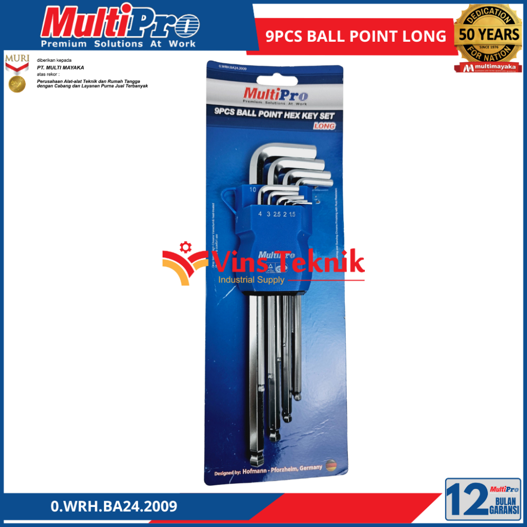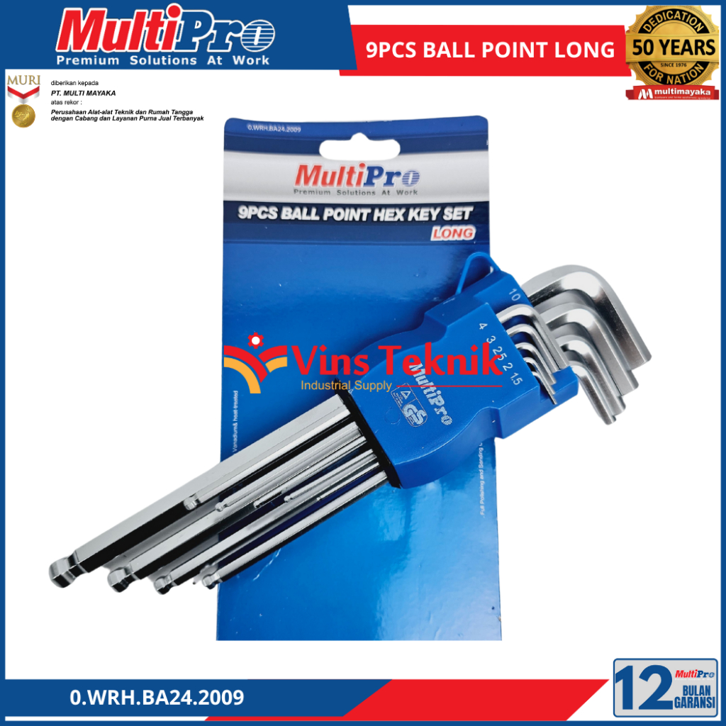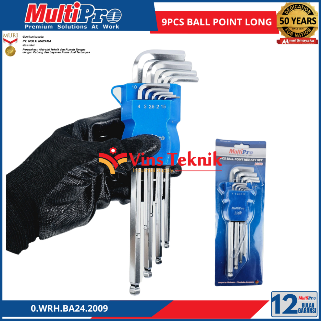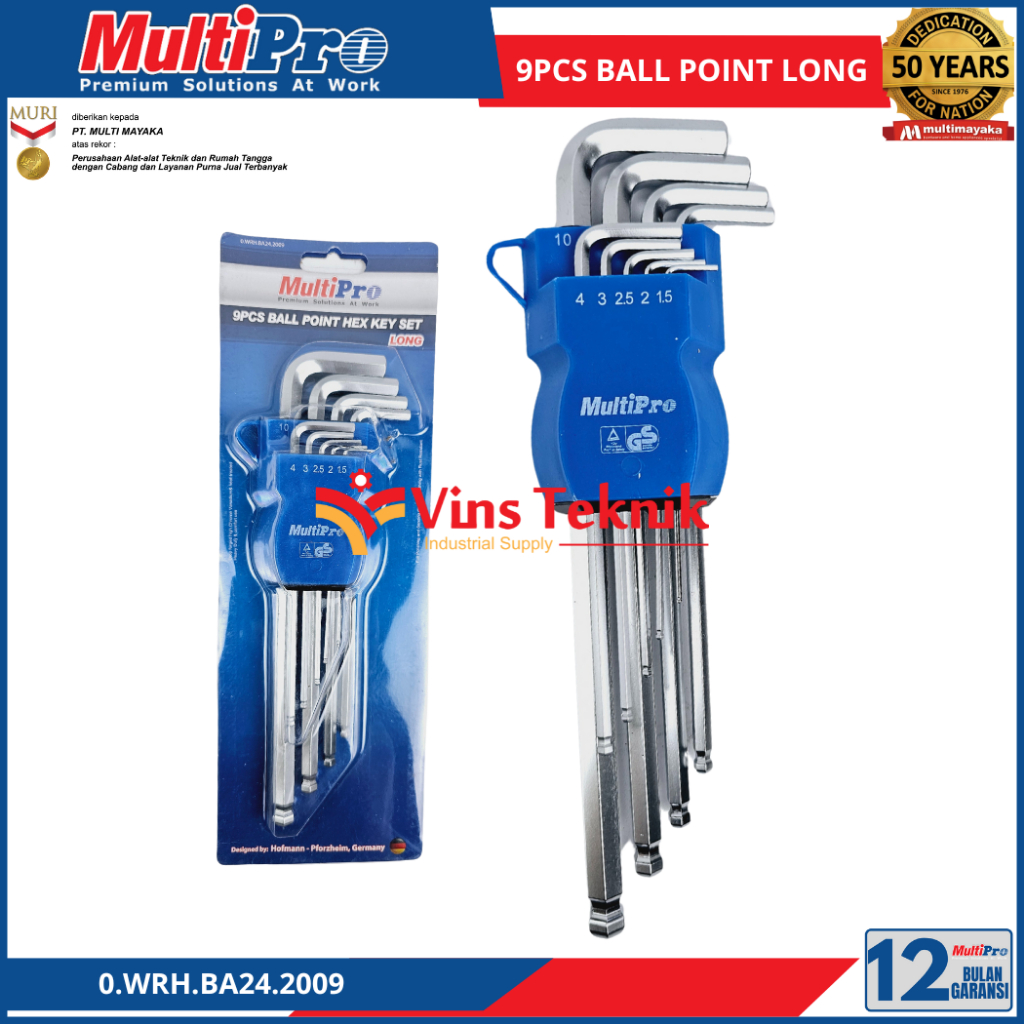 Multipro Kunci L Panjang Multipro Ball Point Hex Key Set 9pcs Long