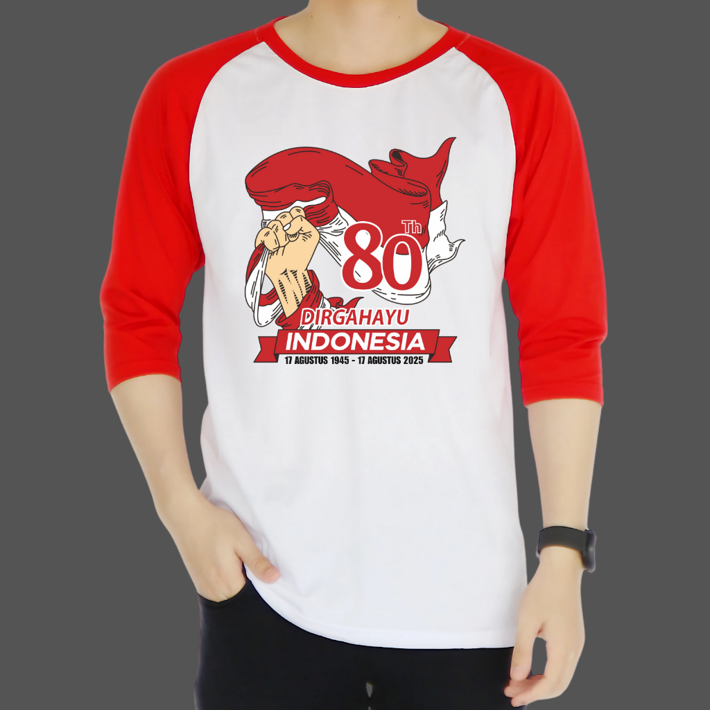 [Gratis Ongkir] Kaos Raglan Putih Merah 80 Th Kemerdekaan | Kaos Kimono 17 Agustus | Kaos Hut Kemerdekaan Dirgahayu Indonesia