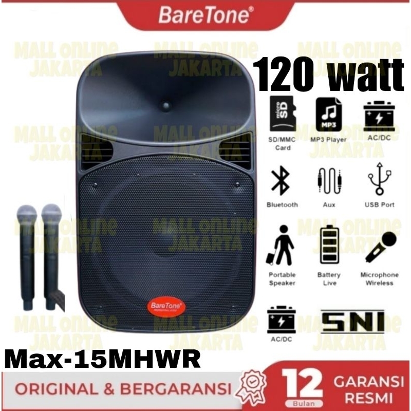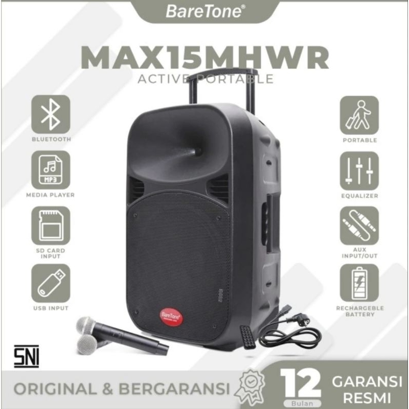 Speaker portable baretone 15 inch mhwr aktif USB bluetooth