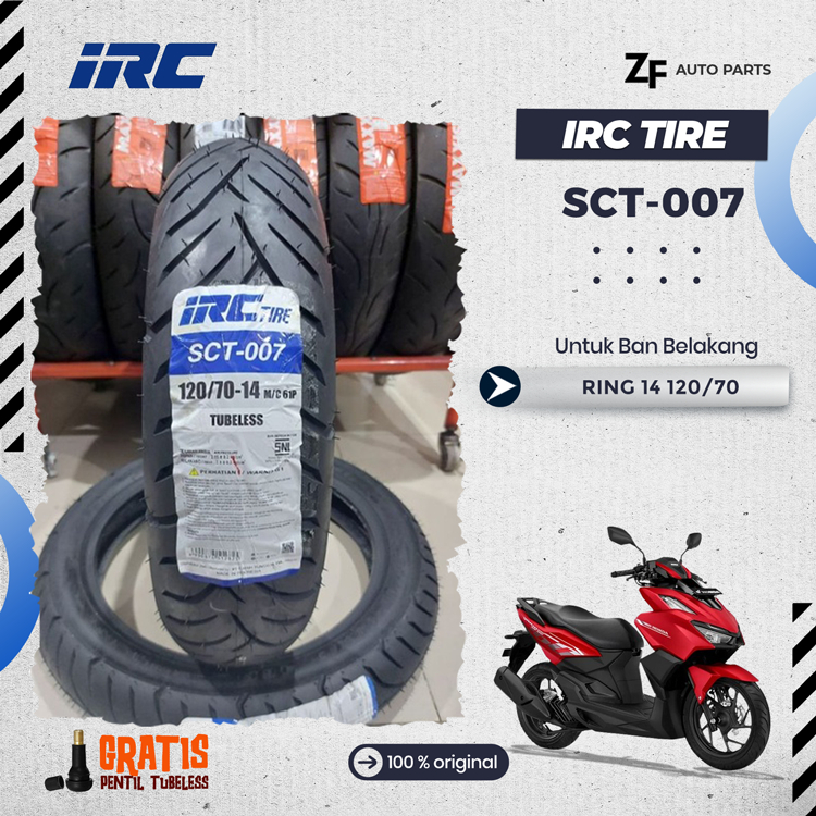 SEPASANG / SATUAN BAN MOTOR VARIO 160 IRC PCX 150 CBS SCT-006 & SCT-007 TUBELESS DEPAN BELAKANG