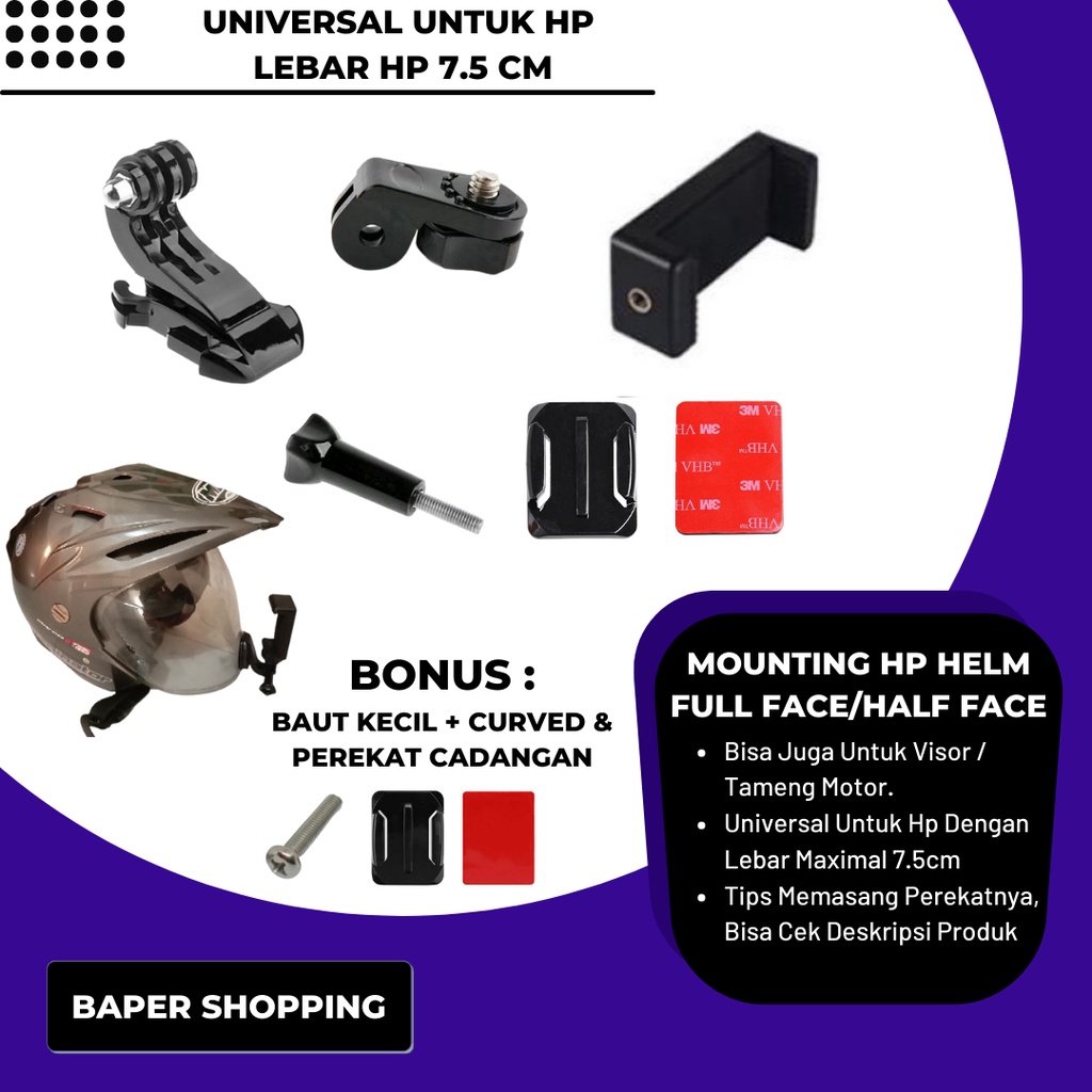 Phone Holder HP Dengan Mounting Gopro Helm Dudukan Visor Motor Breket Helmet Action Camera