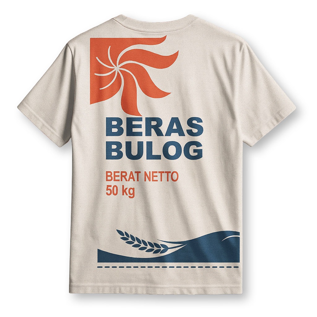 SKUYME Kaos Motif Beras Bulog 50kg – T-Shirt Fullprint Uni Parodi Lucu Desain Karung Beras Vintage | SK-KS0050