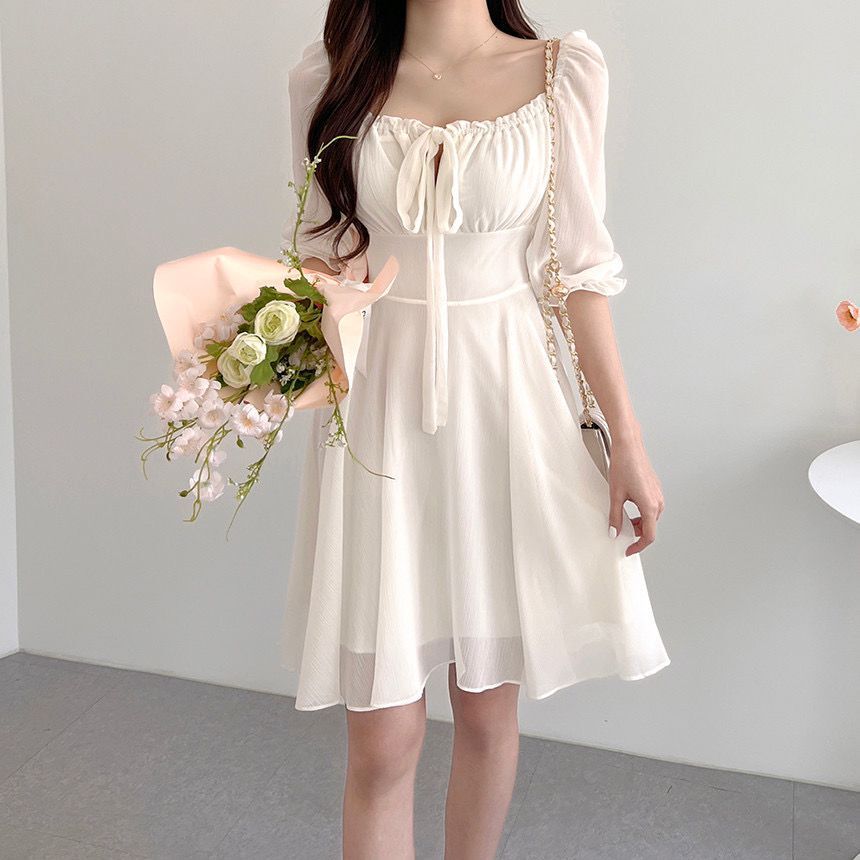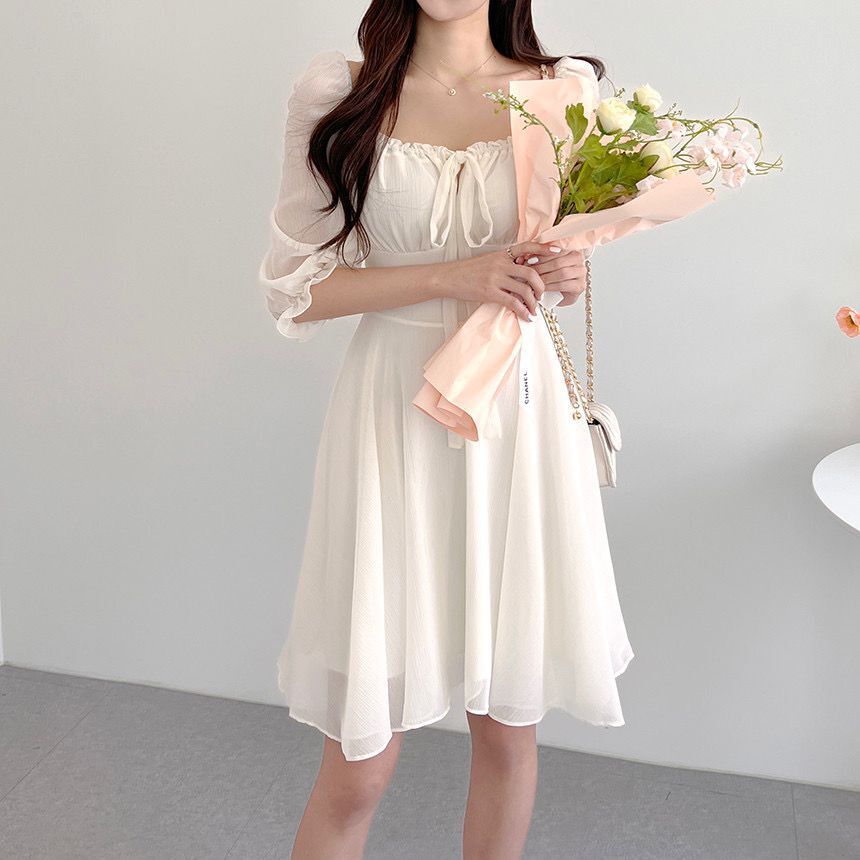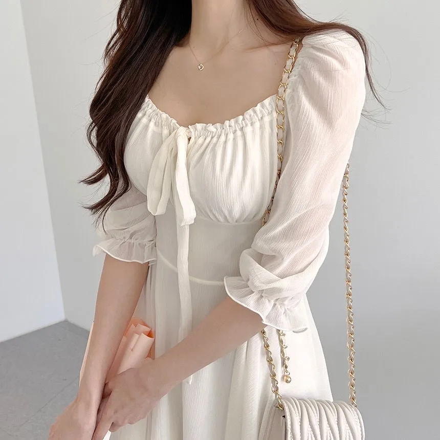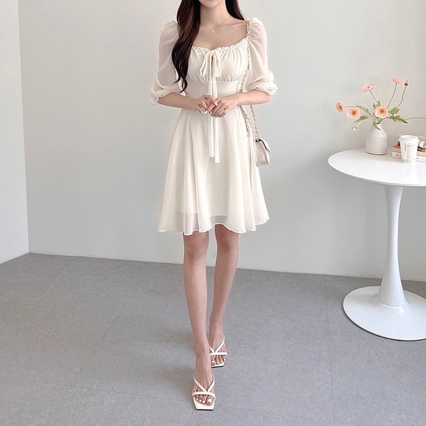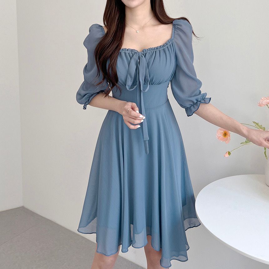 Mini Dress Wanita Sabrina Off Shoulder Lengan 3/4 Bahan Chiffon Sifon Ceruty S M L Xl Jumbo