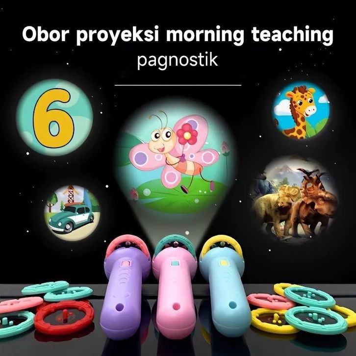 MOONTOY(3 Slide 24 Gambar) Mainan Anak Senter Proyektor/Fun Proyektor Kartun Mainan Edukasi Untuk