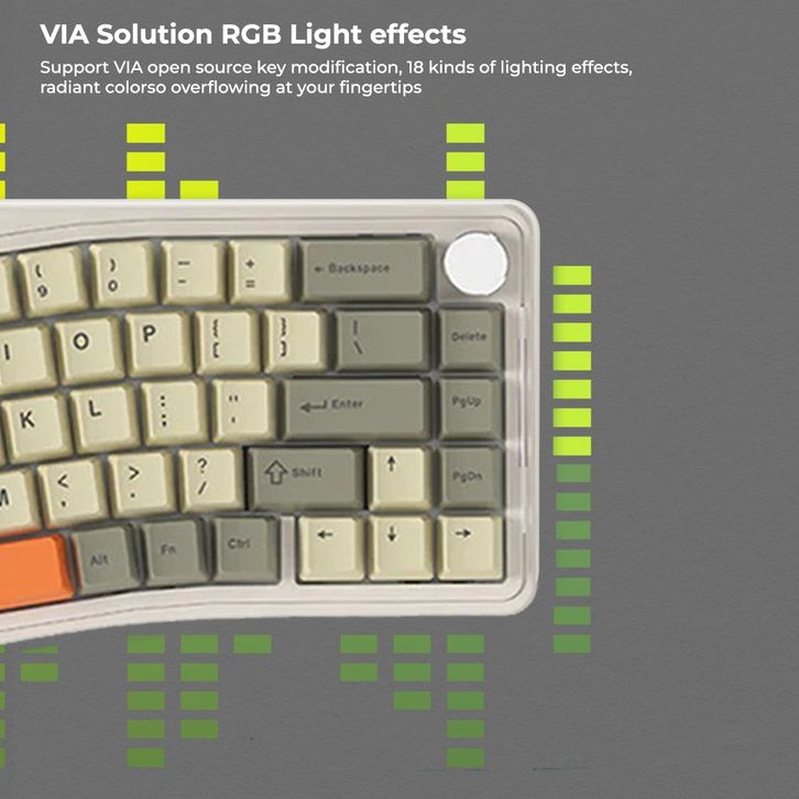 AJAZZ AKS068 ALICE LAYOUT 68 KEYS VIA MECHANICAL KEYBOARD WIRED RGB WITH METAL KNOB VOLUME