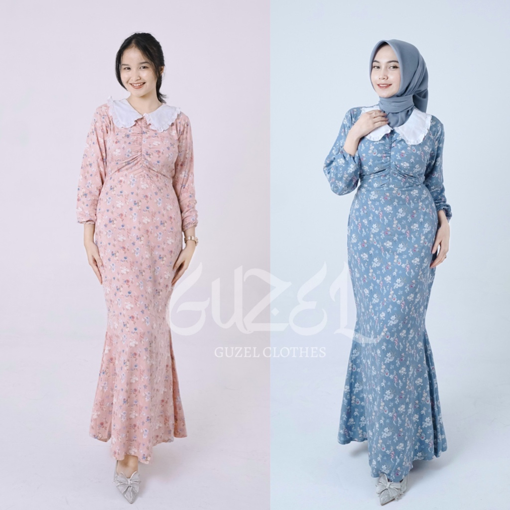 Rose Dress By Guzel Dress Premium Baju Wanita Rayon Koreanlook Motif Bunga Busui Duyung 2024 Lebaran