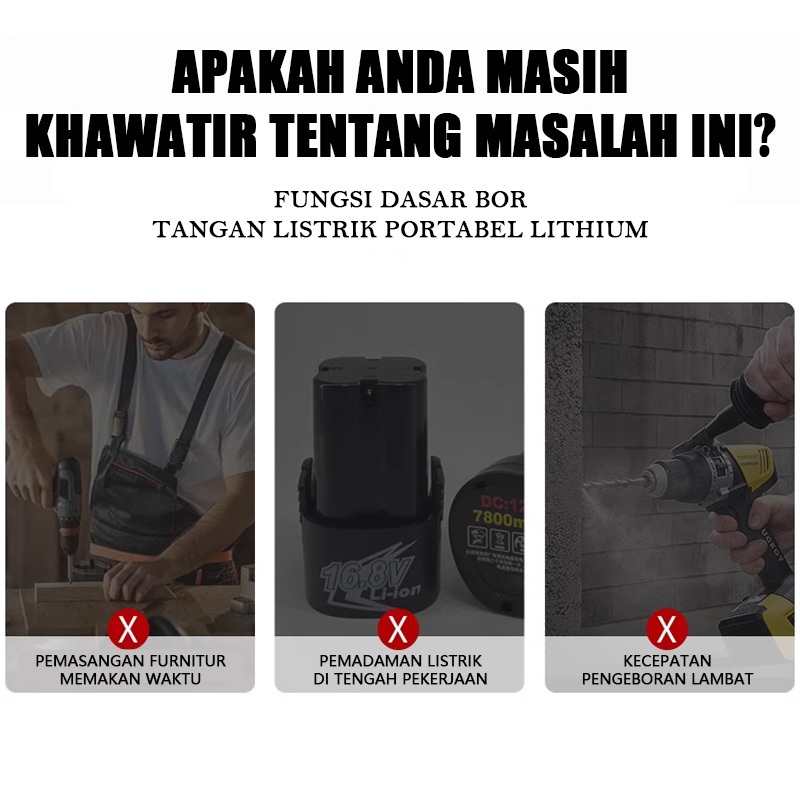 Mesin Bor Listrik ECOSEN 399VF Tanpa Kabel Impact Wrench Serbaguna Bor & Lepas Baut