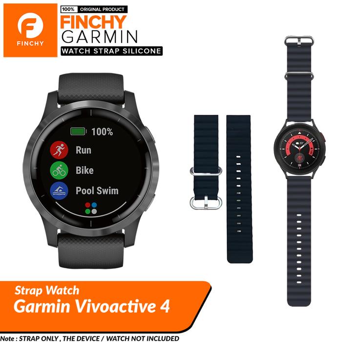 FINCHY OCEAN STRAP GARMIN VIVOACTIVE 4 REPLACEMENT SILICONE WRISTBAND - BLACK