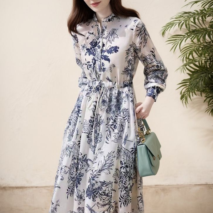 dress smile long dress abstrak wanita gamis vintage floral terbaru casual wanita m654