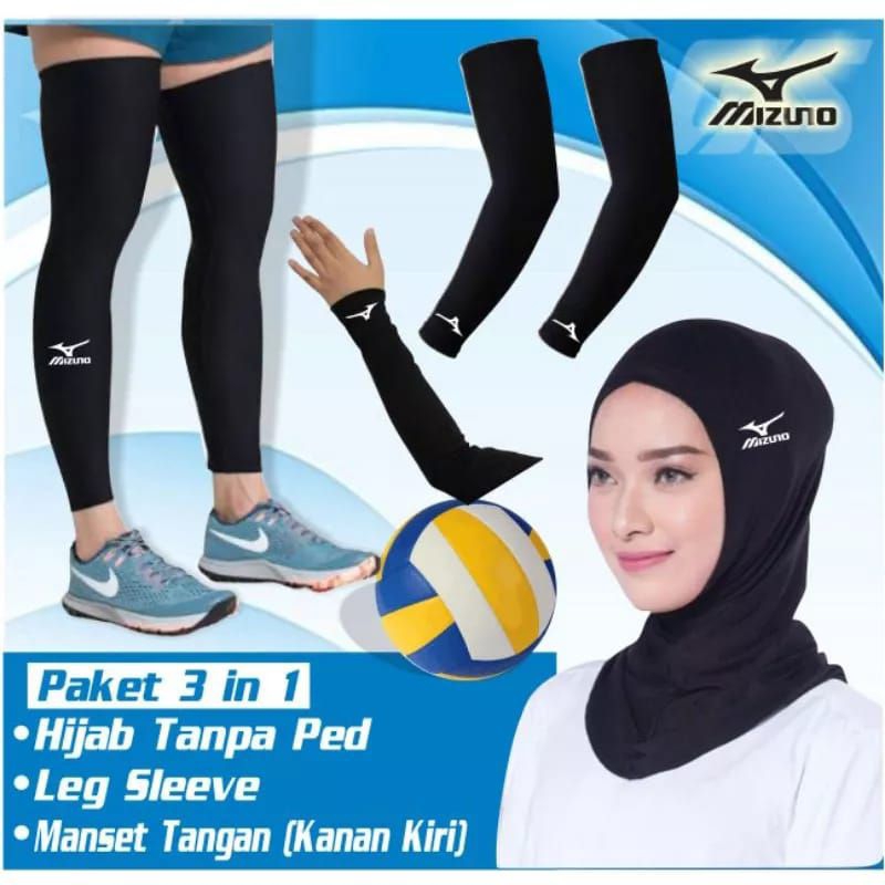 Set pakaian olahraga cewek voli manset tangan hijab voli dekker kaki mizuno