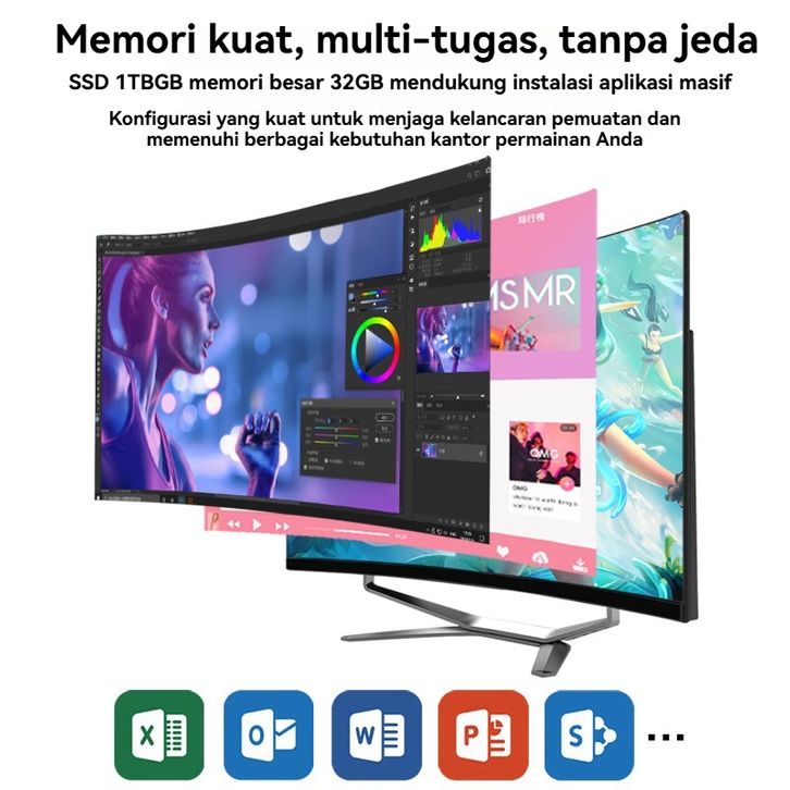 HUAV KOMPUTER ALL-IN-ONE BARU DENGAN LAYAR LENGKUNG GAMING 24/27 INCI, INTEL CORE I5 GENERASI KE-12 / CORE I7 GENERASI K