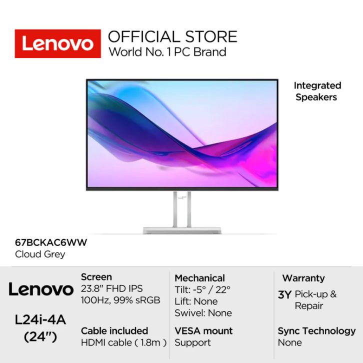 MONITOR LENOVO L24I-4A 23.8" FHD IPS 100HZ 99% SRGB