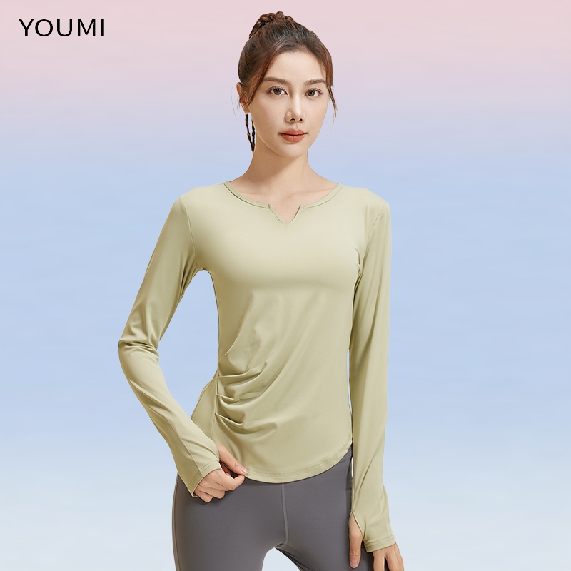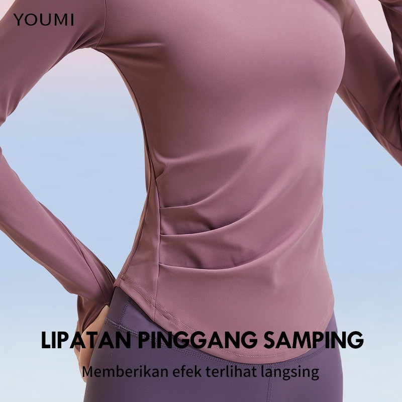YOUMI Baju Gym Atasan Kaos Olahraga Wanita Manset Lengan Panjang Ketat Yoga Tennis Pilates Outfit Dry Fit Sport Pakaian