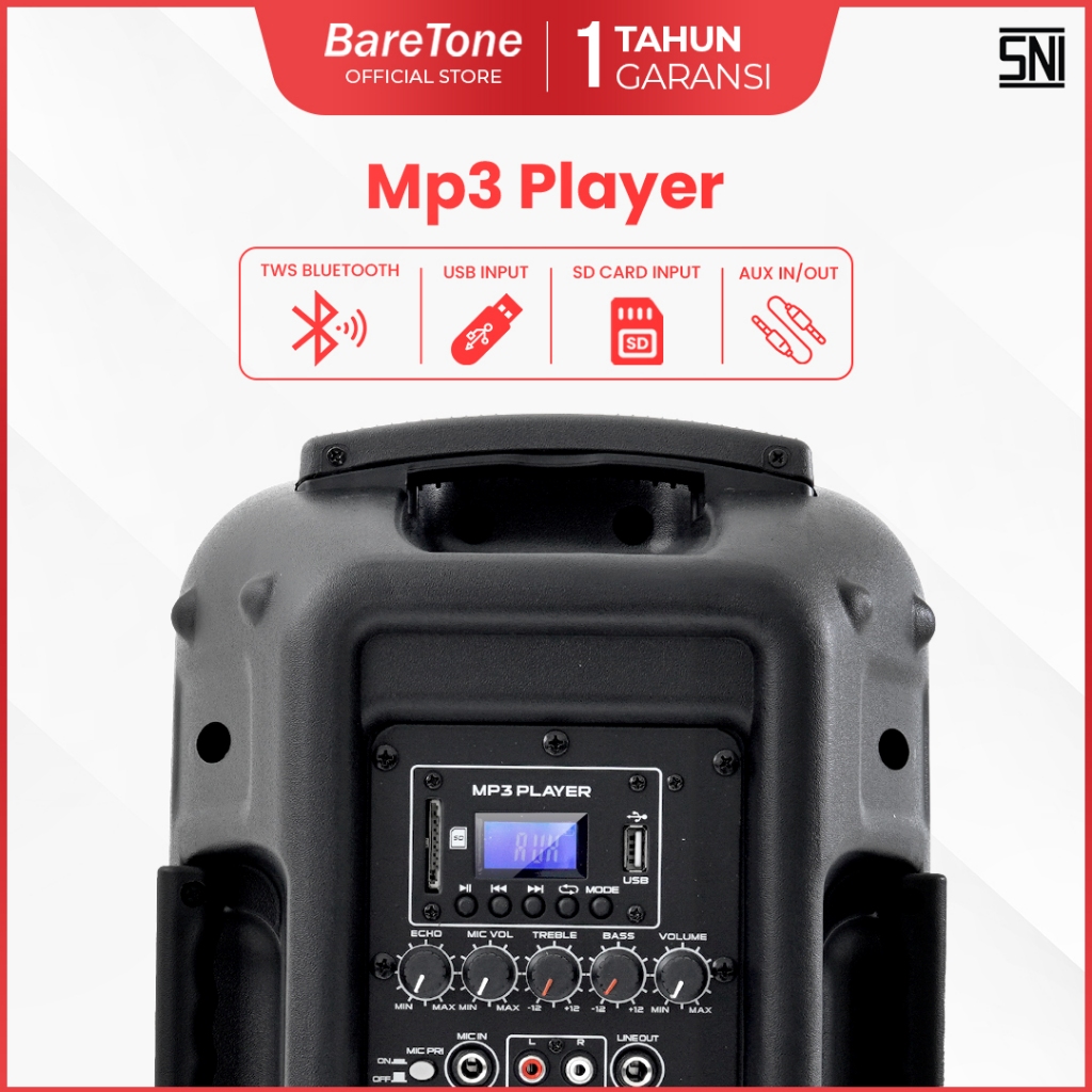 BareTone Speaker Portable MAX08EB Speaker Bluetooth 8 Inch Mini Portable Support Micro SD & USB -Garansi Resmi 1 Tahun