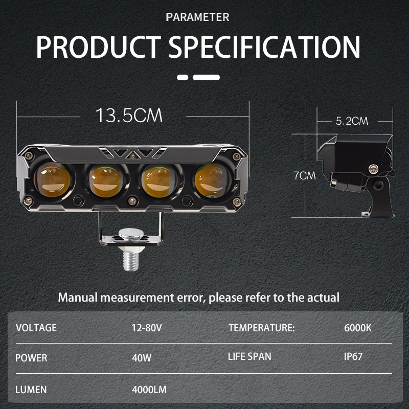 Lampu Tembak sorot Led sql 4 Mata 8d 12-80 Volt plus dekat kuning putih