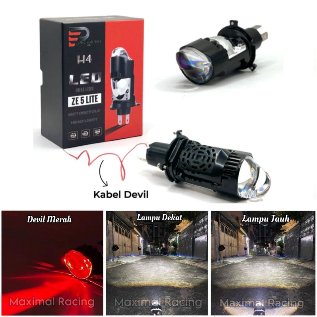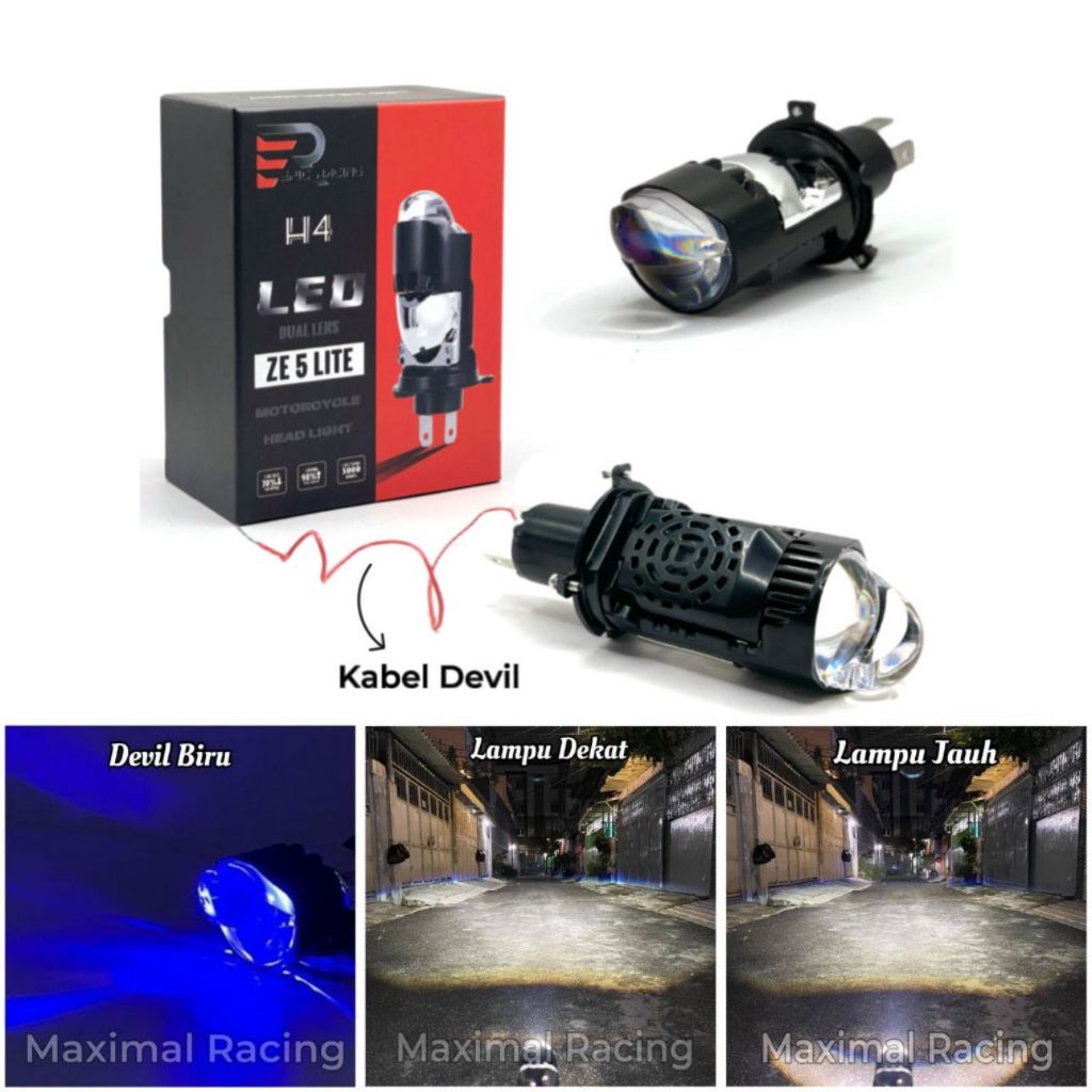 Epicracing - Lampu Utama ZE 5 Lite Blue Lens H4 Projector Dengan Devil Eye Plus Kipas Pendingin Full Aluminium