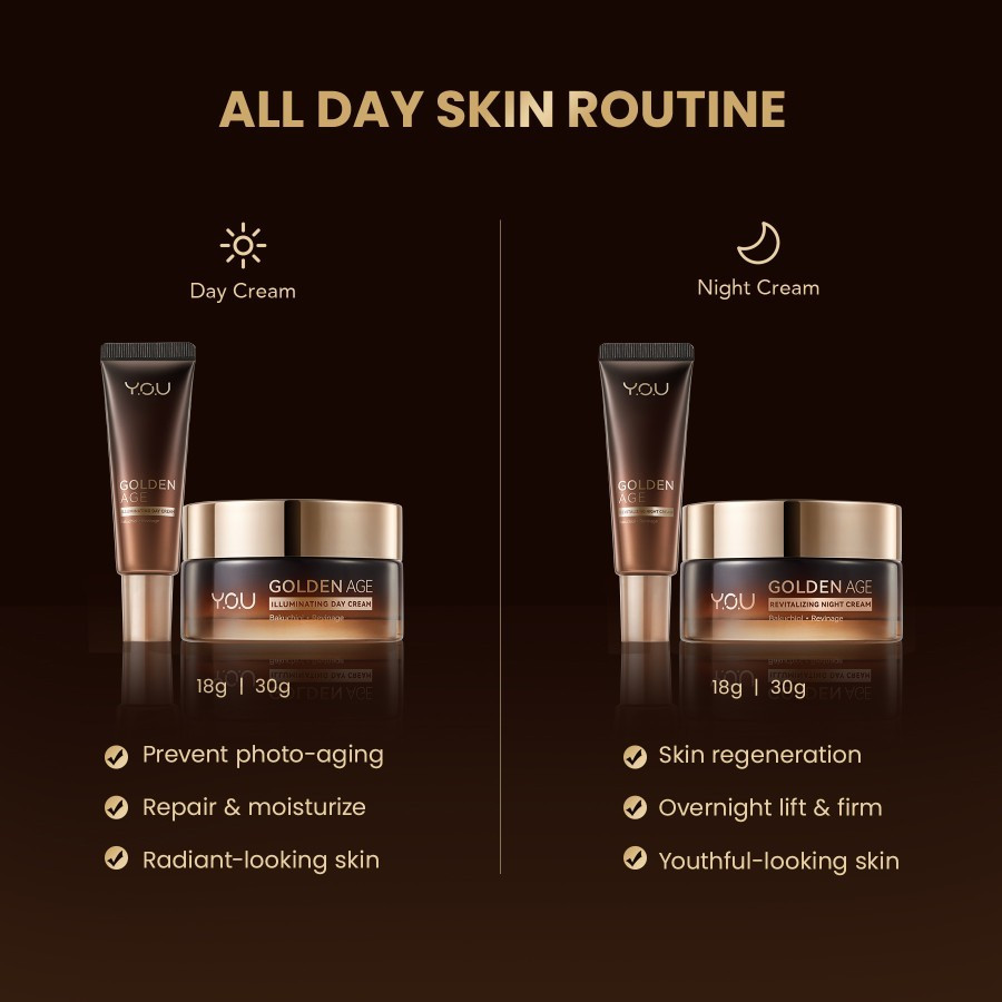 Y.O.U Golden Age Series | Lluminating Day Cream | Intensive Serum | Revitalizing Night Cream