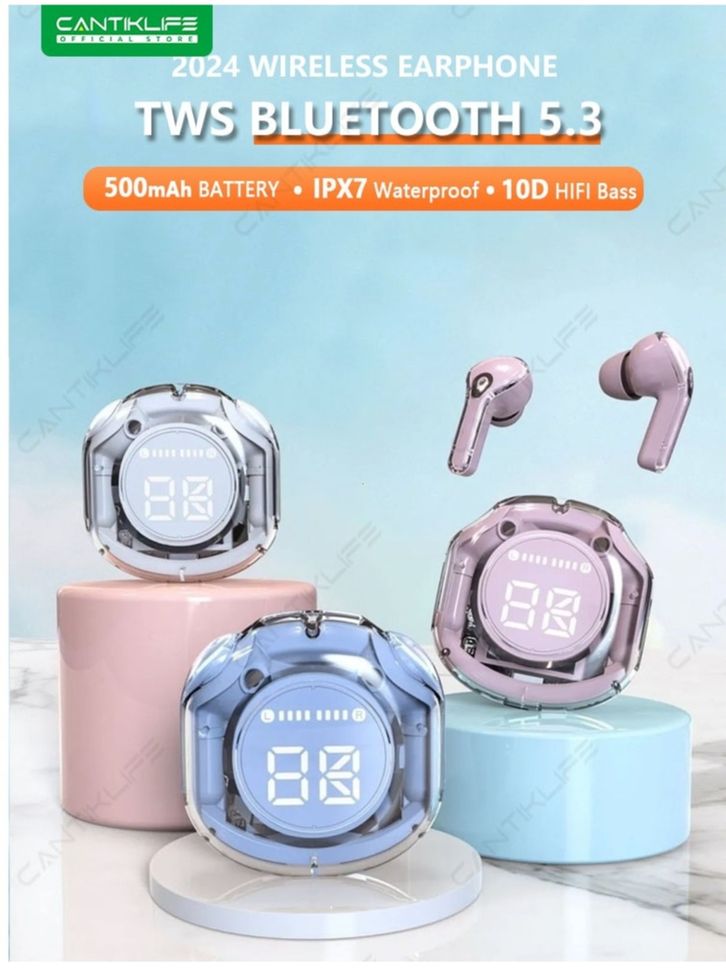 Headset Bluetooth Full Bass TWS HK16 Bluetooth Headset Intelligent Noise Cancelling Wireless Headset Transparent body Bl
