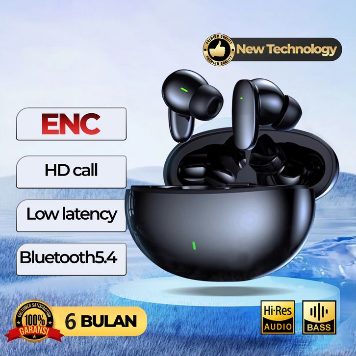 Headset Bluetooth Full Bass 2025 Terbaru Headset Bluetooth 5.3 TWS Wireless Sport Earphone Noise Reduction ENC HiFi Ster