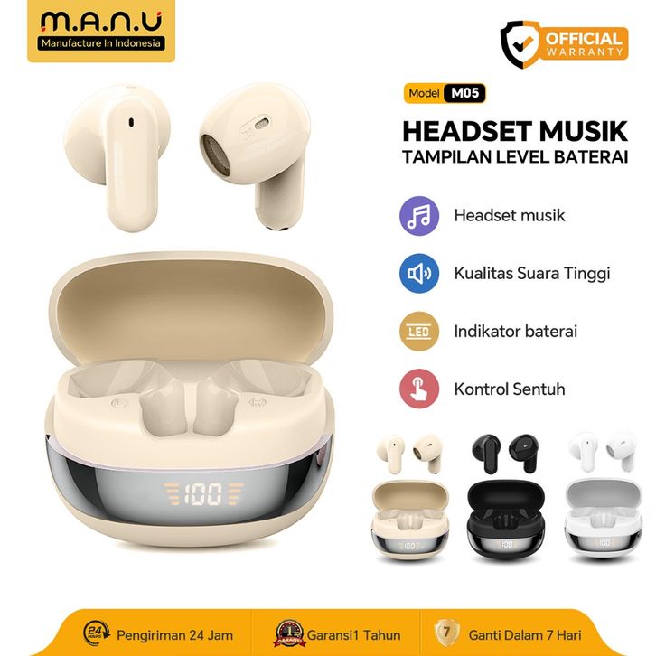 Headset Bluetooth Full Bass MANU Ori Brand True Wireless Headphone Bluetooth M05 Nirkabel TWS Headset V5.3 Pengurangan K
