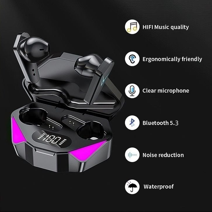 Headset Bluetooth Full Bass ] Headset Bluetooth TWS X15 Gaming Earphone Bluetooth LED Smart Display Headphone Stereo Ear