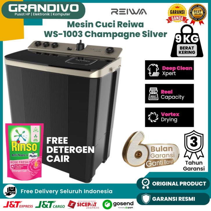 PROMO Mesin Cuci Reiwa 9KG Dua Tabung WS 1003 Next Gen Black Edition Low Watt Dual Wash M0DEe Vortex Drying FREE Papan