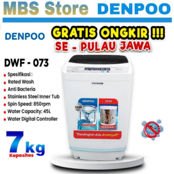 MESIN CUCI DENPOO SNI 1 TABUNG TOP LOADING FULL OTOMATIS SUPER HEMAT LISTRIK- DWF -073HT 7KG