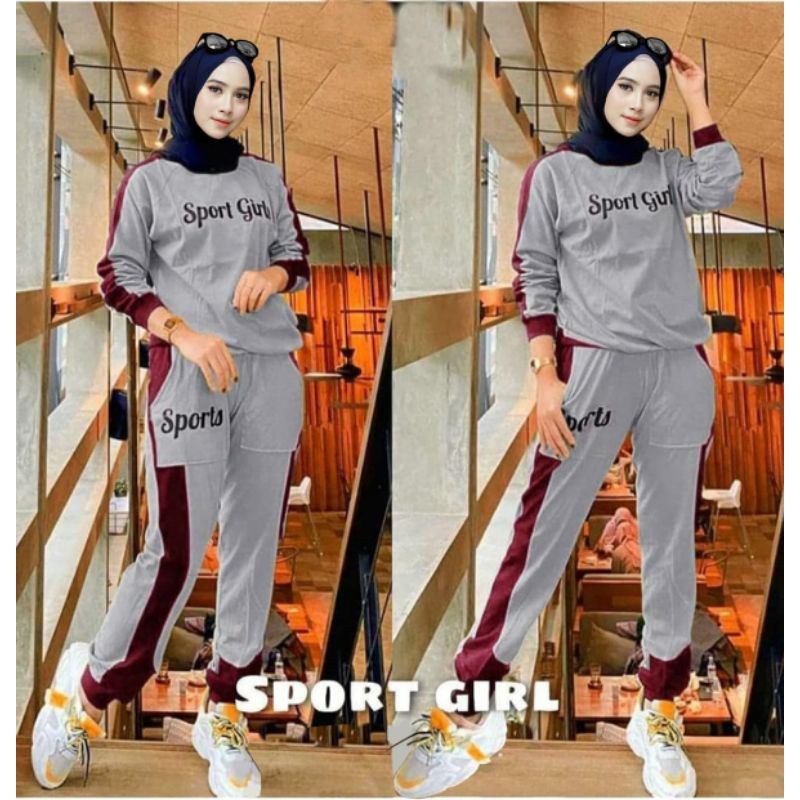 Setelan Panjang Wanita Kekinian Terbaru Set Sport Girl Matt Babyterry Trening Olah Raga Wanita Good Quality Premium