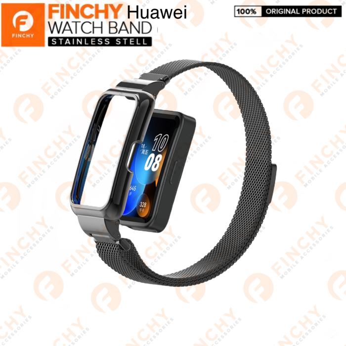 FINCHY STAINLESS STEEL MILANESE STRAP HUAWEI BAND 9 REPLACEMENT METAL WRISTBAND - BLACK