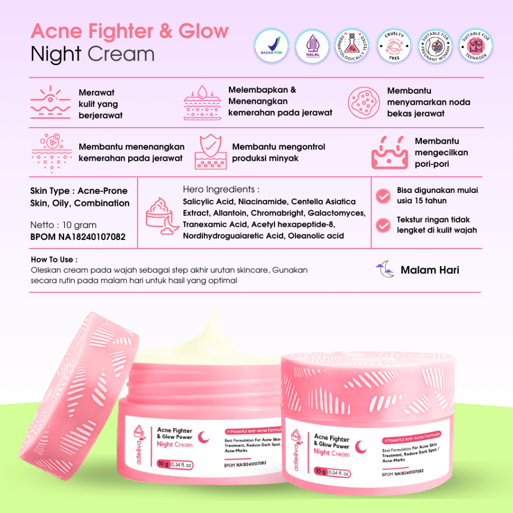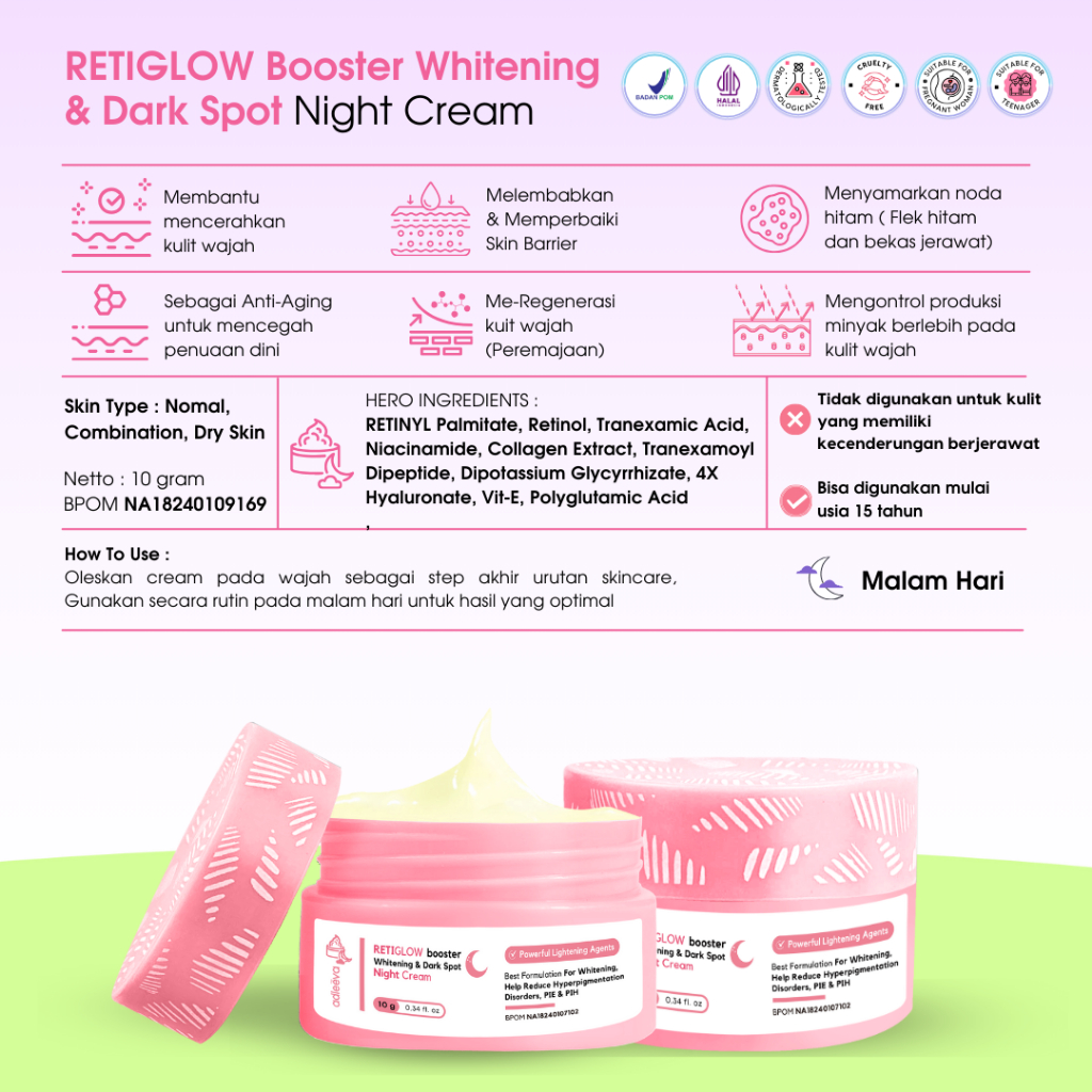 Adleeva Bundle 2 Pcs Cream Siang Malam (Daylight Cream & Retiglow/Acne Night Cream)
