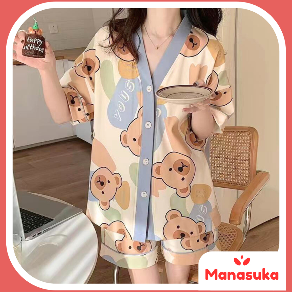 MS Baju tidur wanita dewasa set piyama jumbo model korean style terbaru kekinian full kancing bahan kaos lembut adem ser