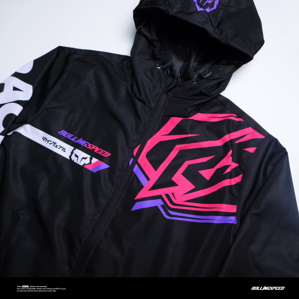 Rollingspeed Volver Windbreaker Jacket Black - Jaket Motor Parasut Hitam