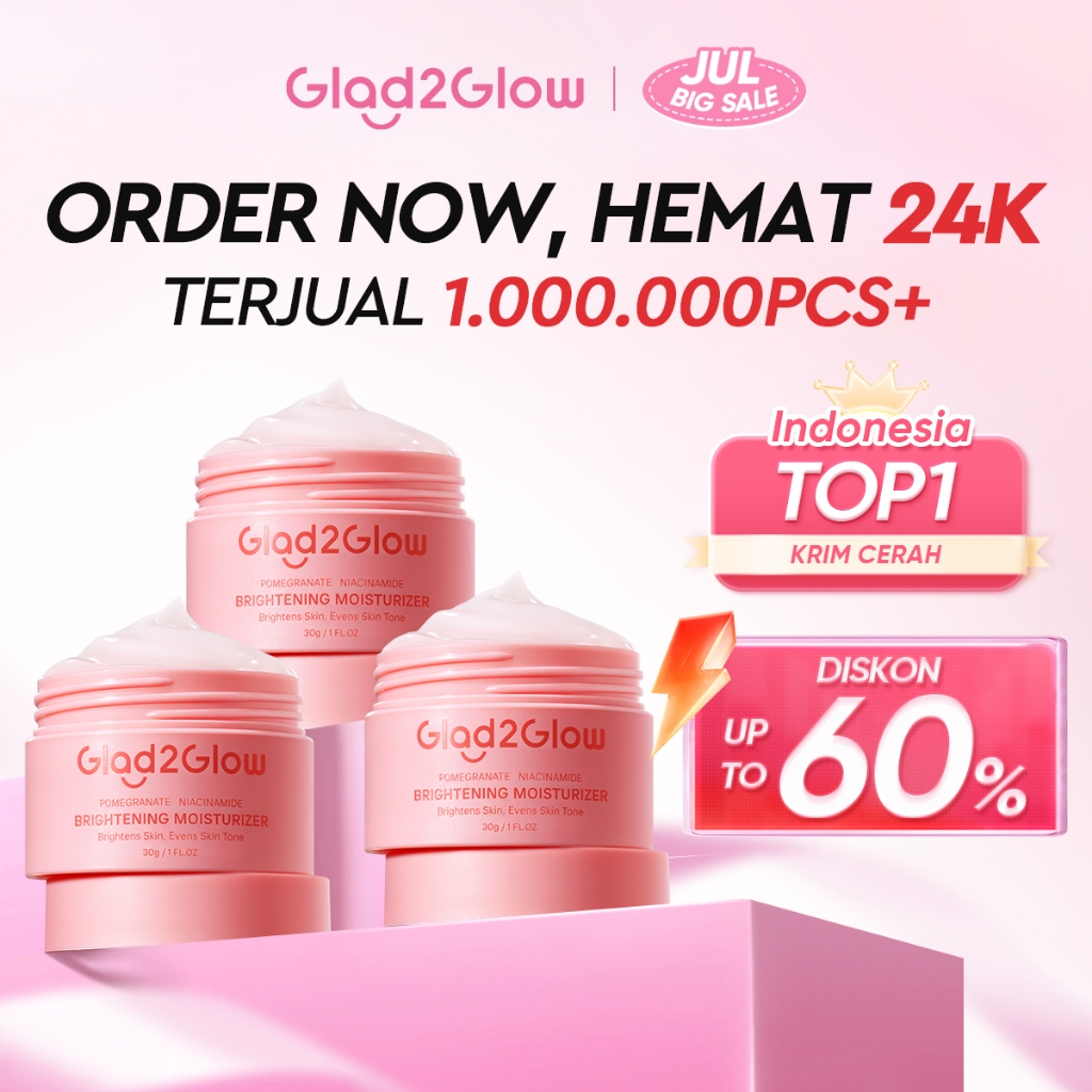 Glad2Glow Pomegranate Niacinamide Brightening Moisturizer Mencerahkan Pemutih Kulit Gel Pelembab Bercahaya Krim Siang Da