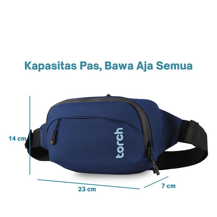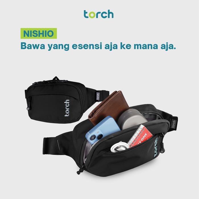 TAS SELEMPANG PRIA WANITA TAS PINGGANG ANTI AIR - TORCH NISHIO - HITAM POLOS