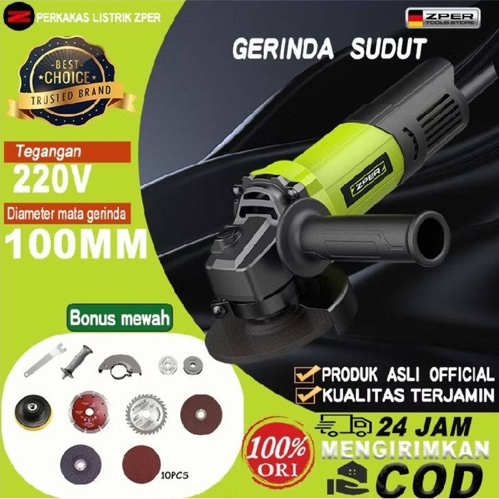 Gerinda ZPER Angle Grinder Listrik Angle Grinder Penggiling Sudut Portable Multifungsi Untuk Potong