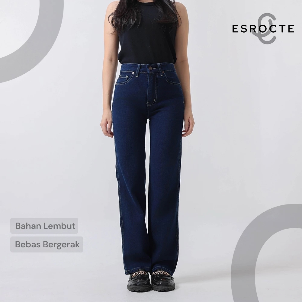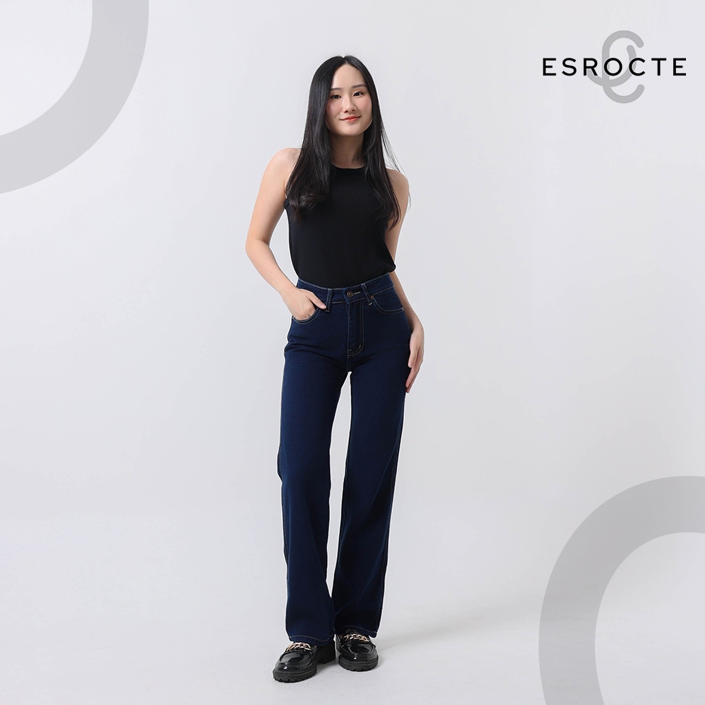 ESROCTE NAIA PANTS | CELANA LOOSE JEANS WANITA HIGH-WAIST –NAVY RETRO– 26–38