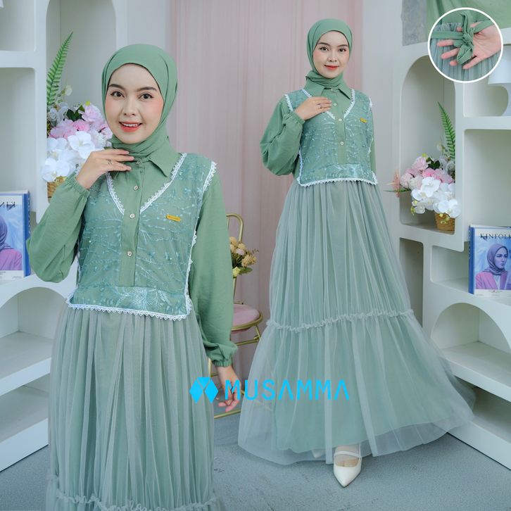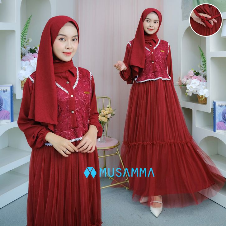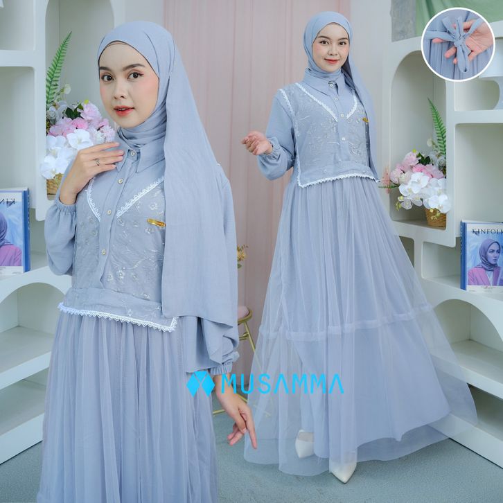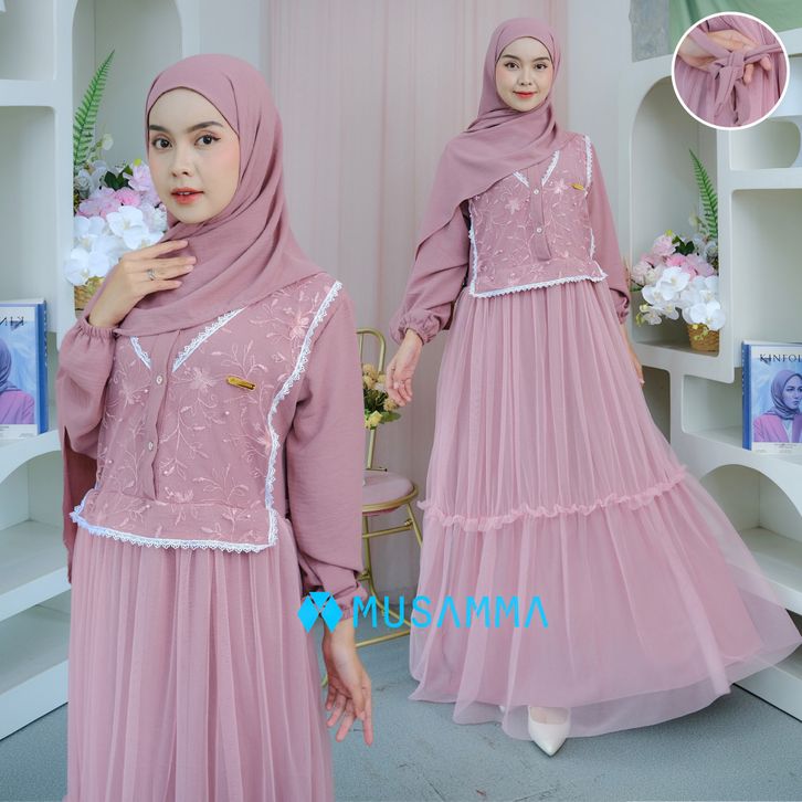 hana dress - gamis crinkel premium mix brokat tile mutiara busui dan wudhu friendly